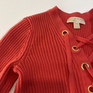 EUC MICHAEL KORS Ribbed Knit 3/4 Sleeve Sweater Coral