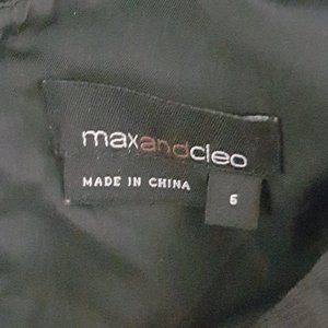 Gorgeous textured Max and Cleo little black dress in like-new condition. Perfect for date night, cocktails, or a semi-formal event. Excellent quality and attention to detail. The fabric is medium-to-heavy weight, suitable for fall and winter. It has a gentle sheen and a silky bow at the waist. I'm 5'5 at it hits just above the knee.