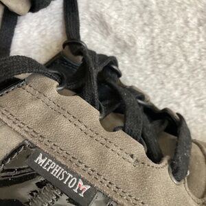 EUC Mephisto leather lace up walking shoes size 6 1/2 grey with black trim