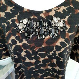 EUC Michel Studio animal print bejeweled short sleeve tshirt top