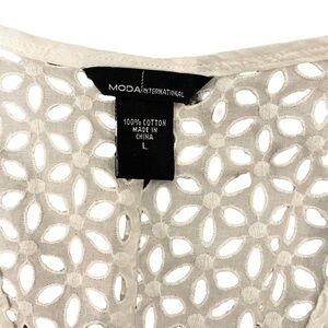 EUC Moda International vest, cotton eyelet fabric, white, size Large.