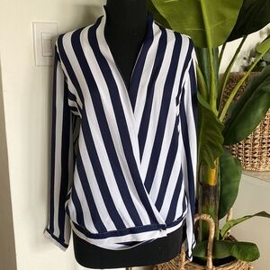 EUC Mohito Deep V-neck Plunge Striped Blouse