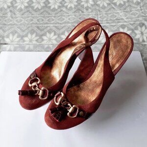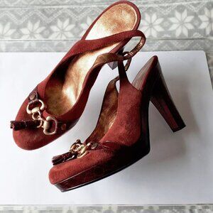 EUC Nine West maroon burgundy suede open back heeled platform shoe
