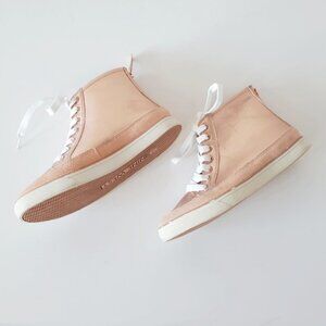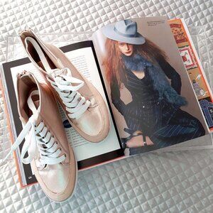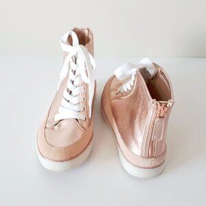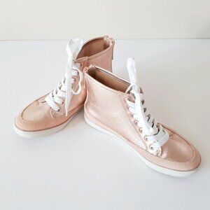 EUC Nine West shiny effect rose gold faux leather and faux suede high top sneakers