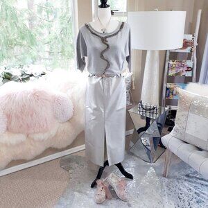 EUC Nougat London marbled grey cotton blend "sweatshirt"-like fabric top with embellished detail