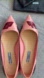 Stylish Prada Pink Patent Leather Kiss Print Flats with pointed to.