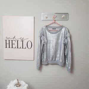 EUC Piazza Del Tempio silver foil ruffle tulle accent sweatshirt