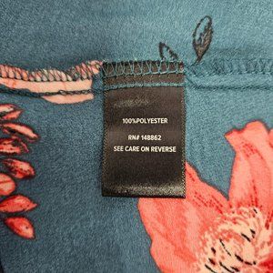 Size 2 Torrid Blouse in a Teal green and orang floral print. Light and flowy material is 100% polyester.