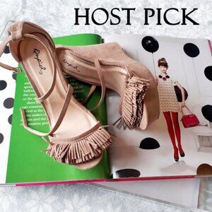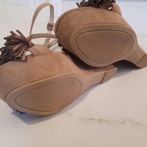 EUC Qupid nude suede strappy wedge platform sandal, 6