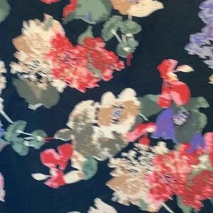 Eye catching vibrant floral pattern on black. Off the shoulder crop top with clear shoulder straps. Wide, flowing cap sleeves.