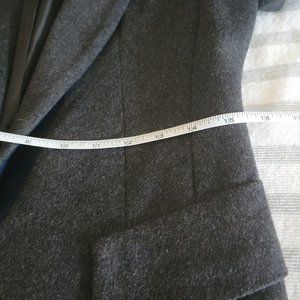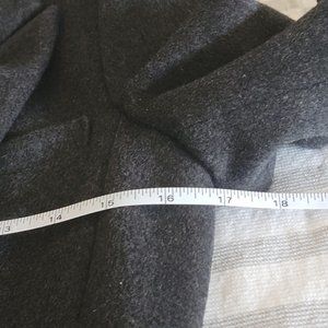 EUC S. Lriahh size 4 (small) as Asian conversion from size 55 on tag. Lovely charcoal gray wool blend coat, very soft and believed that part of this blend is cashmere. Single button closure with sealed pockets, peaked lapel collar, button details on cuffs. No marks, stains, pulls, pilling, in new condition. Perfect weight for fall or spring. Flatlay measurements taken buttoned up
