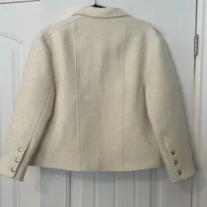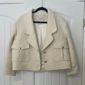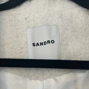 Chic and timeless blazer by Sandro Soft cream hue with classic lapel design. Features stylish front pockets and button closure.
