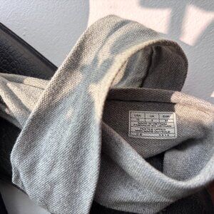 - Heather grey stretchy fabric straps + anthracite/black insole