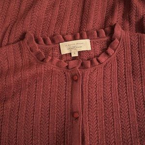 EUC Sezane Louis Ruffle Sleeve Cardigan in Rosewood Pink Merino Wool | size L