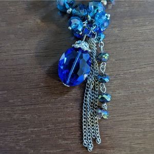 EUC Sparkly Ombre Blue to Gold Cut Glass Stretch Bracelet with Dangle