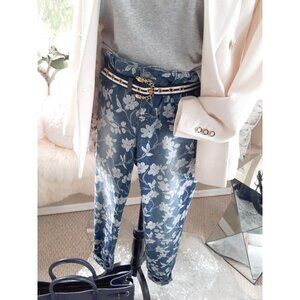 EUC Suko Jeans blue and white floral print faded denim jeans