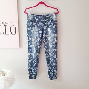 EUC Suko Jeans blue and white floral print faded denim jeans