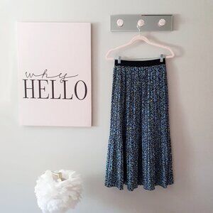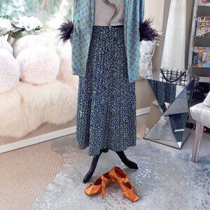 EUC The Moon blue, black & yellow animal print pleated skirt, M/L