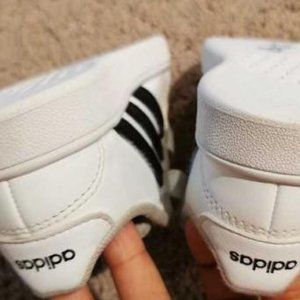 Gently used Adidas sneakers for girl or boy. Size 6.5. slight discoloration on the tips (from storage). Should come off in the wash. From pet free and smoke free home.