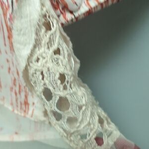 EUC Tribal Buttoned Blouse with Mandarin Collar And Lace Accents. Size Small