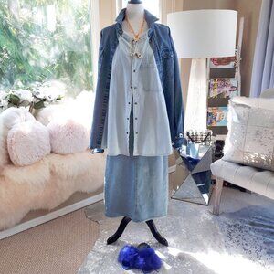 EUC Vault oversize two tone blue denim jean jacket, OS