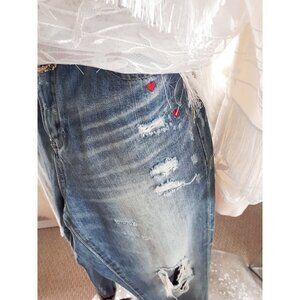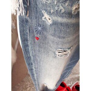 EUC Velvet Heart Denim Mavi blue dark wash high rise straight leg embroidered denim jeans