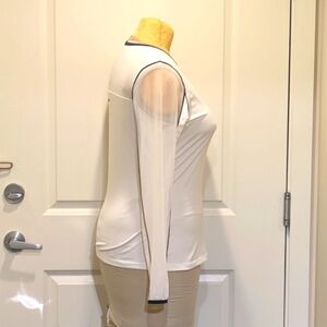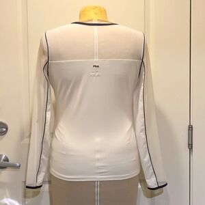 EUC Vintage 90s Fila XL Sheer Panel White Stretch Top with Black Piping