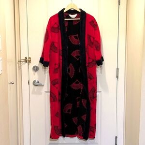 EUC Vintage Diamond Tea L Red and Black Fan Print Bath Robe - SEE SIZE NOTES