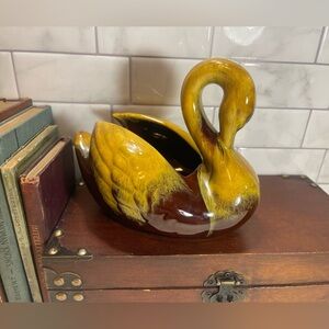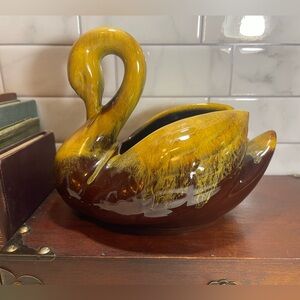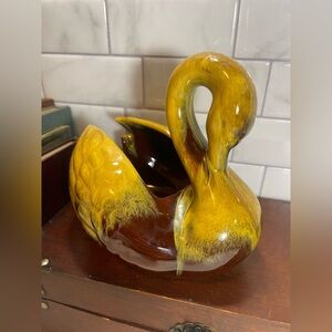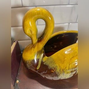 Vintage mid century modern Blue Mountain pottery ceramic Swan vase in the rich, warm tones of the Harvest Gold line!