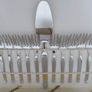 EUC Vintage FBG Casalinghi Stainless Steel 50th Anniversary Cake Plate, with 12 Forks