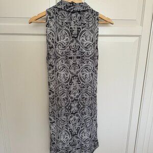 Willfred Sabine Dress in Paisley lace pattern. This is a sleeveless dress with a faux-wrap front and self-tie detail at the waist. Made with 100% silk and dry clean only.