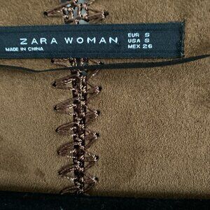 EUC ZARA WOMEN EMBROIDED VEST SLEEVELESS TIE-UP TOP BROWN SIZE S