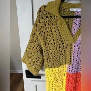 EUC Zara Oversized Colorblock Chunky Knit Polo - Size Small