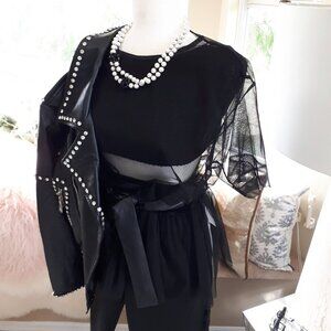 EUC Zara black mesh-like tulle sheer t-shirt top w/ ruffle hem, M