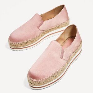 EUC Zara Basic Collection blush pink satin effect slip on espadrille style shoes with chunky platform