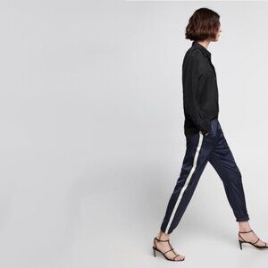 EUC Zara Basic navy blue satin-like jogger trackpants with black and white racer stripes