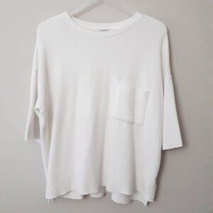 Longer short sleeves, +/- 3/4 length, unfinished cuff