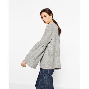 EUC Zara Trafaluc soft feel light grey long bell sleeve top