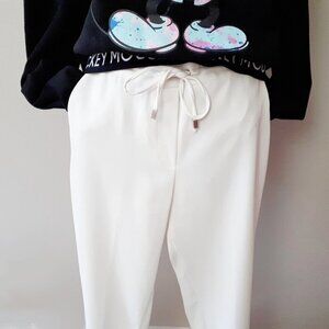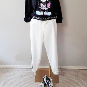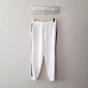 EUC Zara white casual pants with black pipe detailing and drawstring waist, S