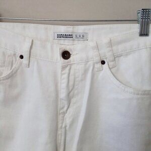 EUC Zara Basic Denim white denim relaxed fit, mid-rise distressed ripped jeans