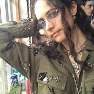 EUC size S military army beaded floral felt foliage jacket shirt top