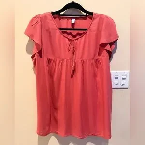 EUC size XL Women's Coral Tassel-Tie Swing Flutter Sleeve Top