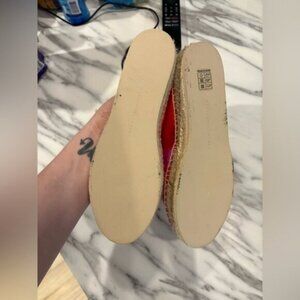 Bold espadrilles with a pink and red color scheme. Perfect for a stylish statement.