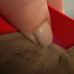 See photos!! Tiny mark in 2 areas in one shoe on suede, maybe could come out with suede cleaner?!?