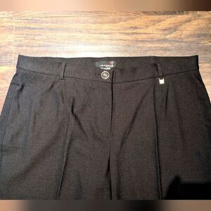EUC Laura Plus Petites 18P Black Straight Leg Slacks with Pleats and Gold Button