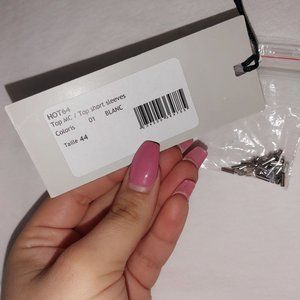 Cotton top with pretty details of tube pearls and very feminine lace in white