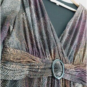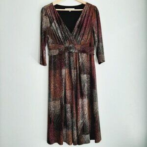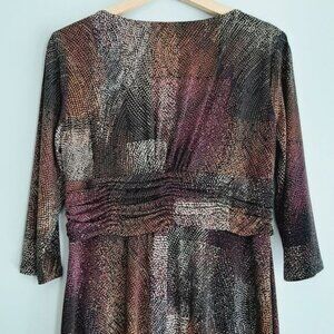 EVAN PICONE | Midi Length Surplice V-Neck Soft Stretchy Dress Abstract Print 10