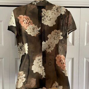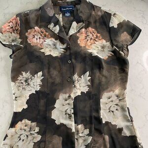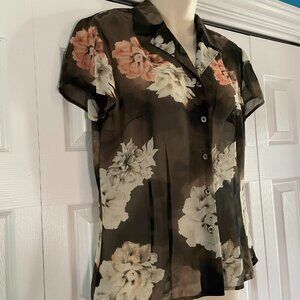 EVAN Picone cap sleeve Blouse Floral Semi Sheer button - Women's size 10