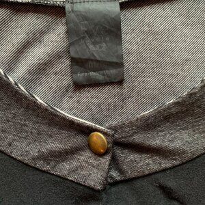 Style: Diagonal cap sleeves - large V neck with little snap permanent button in the middle