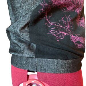 EVE LAVOIE - V neck grey black tees t-shirt with pink print - Medium
